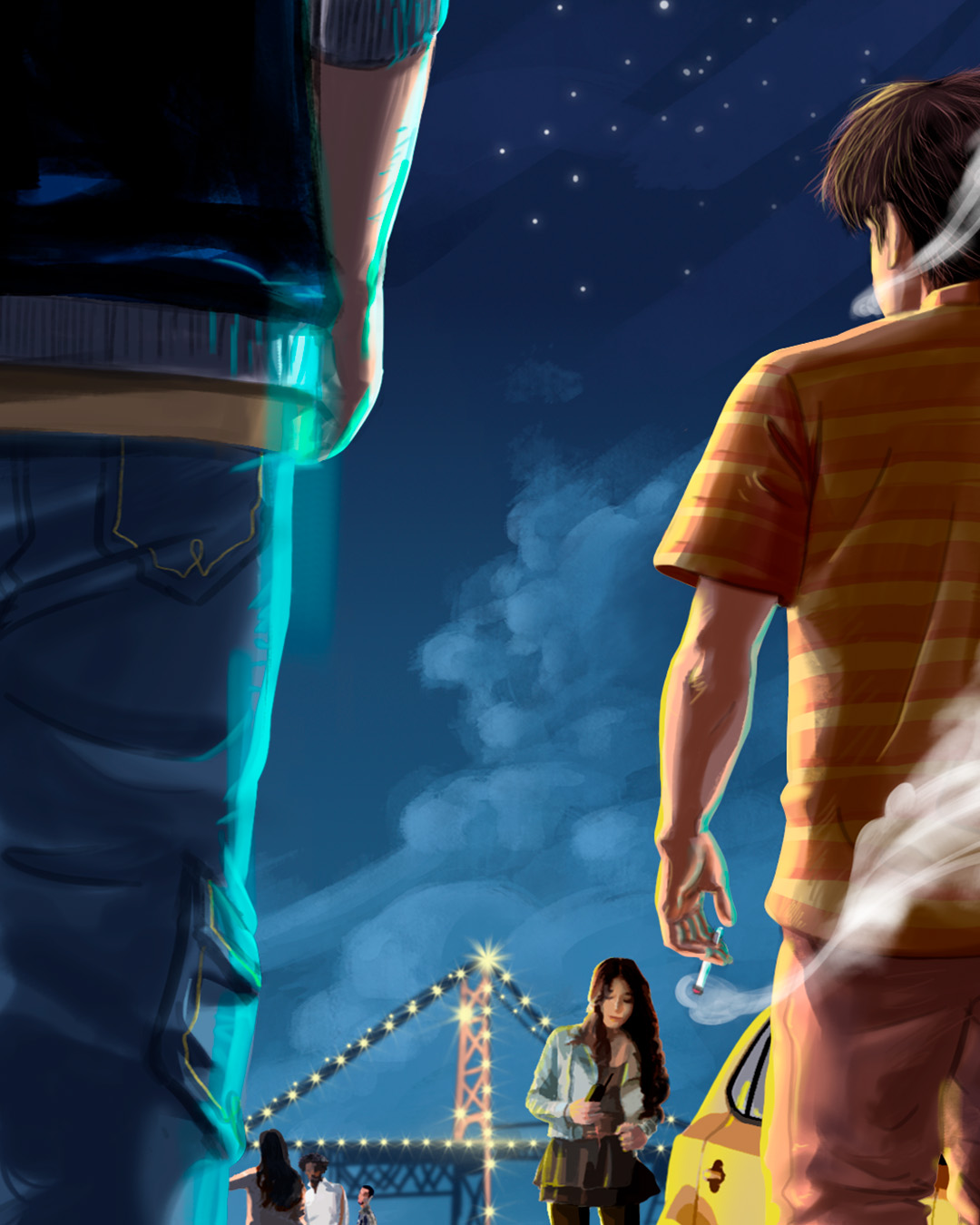 A criação da arte de capa foi elaborada para retratar o conteúdo do livro. O cenário tem elementos clássicos da região mais visitada na obra: A Beiramar Norte de Florianópolis, com a sua famosa ponte Hercílio Luz e a saudosa fachada da casa noturna El Divino.