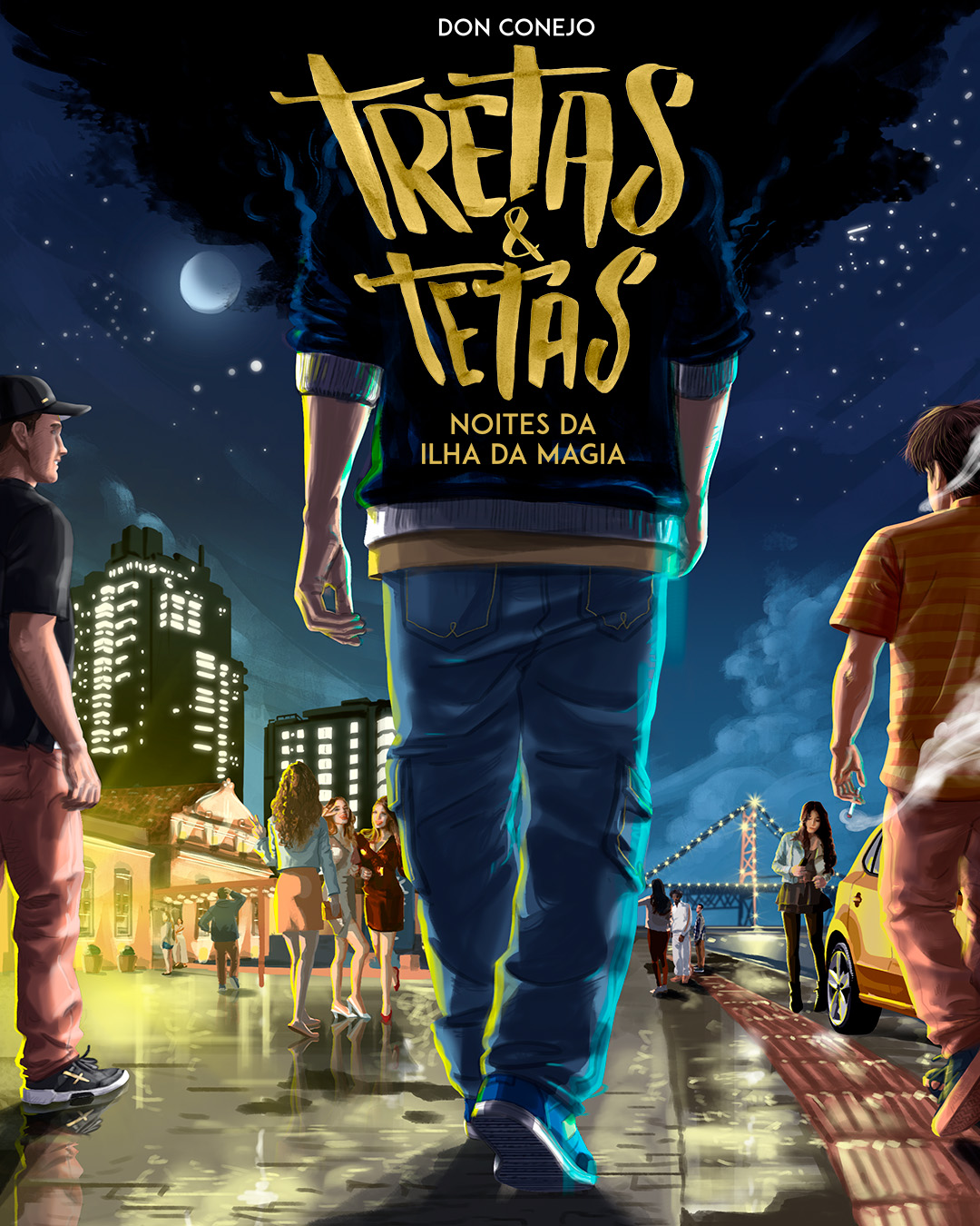 The creation of the cover art was designed to portray the content of the book. The setting has classic elements from the most visited region in the work: The Beiramar Norte of the city of Florianópolis, with its famous Hercílio Luz bridge and the nostalgic façade of the El Divino nightclub.